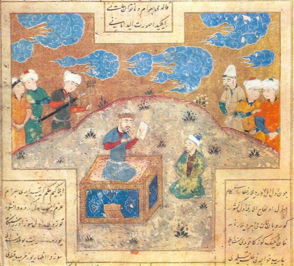Sixteenth century painting by Ali Shir-Navai of Mani the painter presenting one of his drawings to Bahram Gur (Source: Voice of America).
